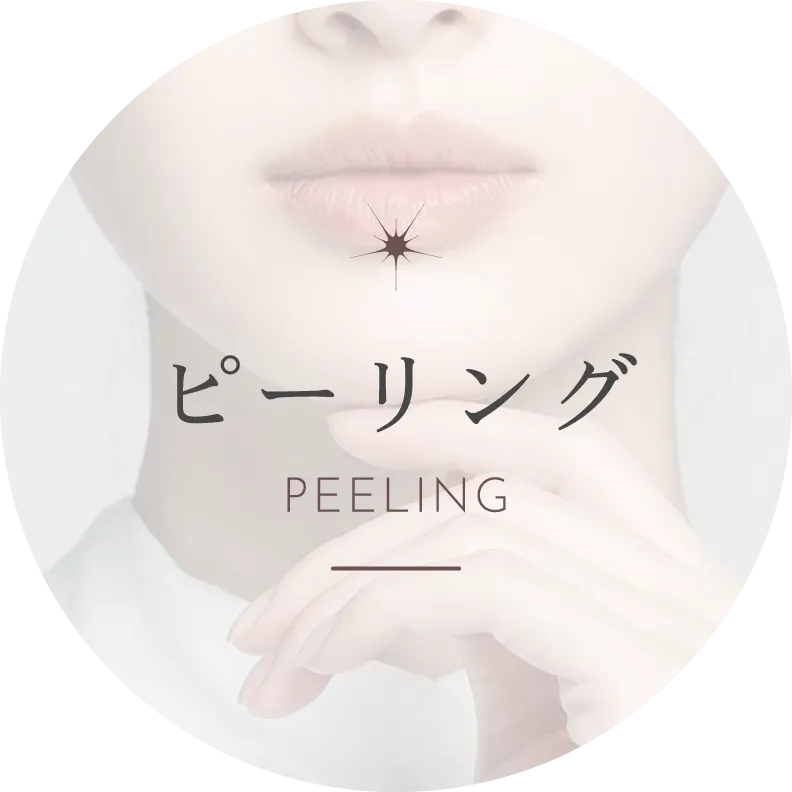 ヒトの肌のターンオーバーは正常であれば 28日~45日といわれています。生活習慣やホルモンバランス、紫外線や老化などに よってこの周期が乱れると、古い角質が溜まり、毛穴が詰まってにきびができたり、くすみや肌トラブルの原因になってしまいます。ケミカルピーリングとは医療用の酸を皮膚に塗布し、皮膚表面の古い角質や毛穴に詰まった皮脂を剥離(ピーリング)し、肌の代謝を高める治療法です。メラニン排出を促すことによってシミ・肝斑の改善、肌のトーンアップにも効果的です。毛穴の角化抑制のほか、皮膚表面の角質を除去すると皮膚の細胞からいろいろな作用を伝達する物質(サイトカイン)が放出されることが知られており、コラーゲンが増生され、キメ細やかなくすみのない肌へ導きます。